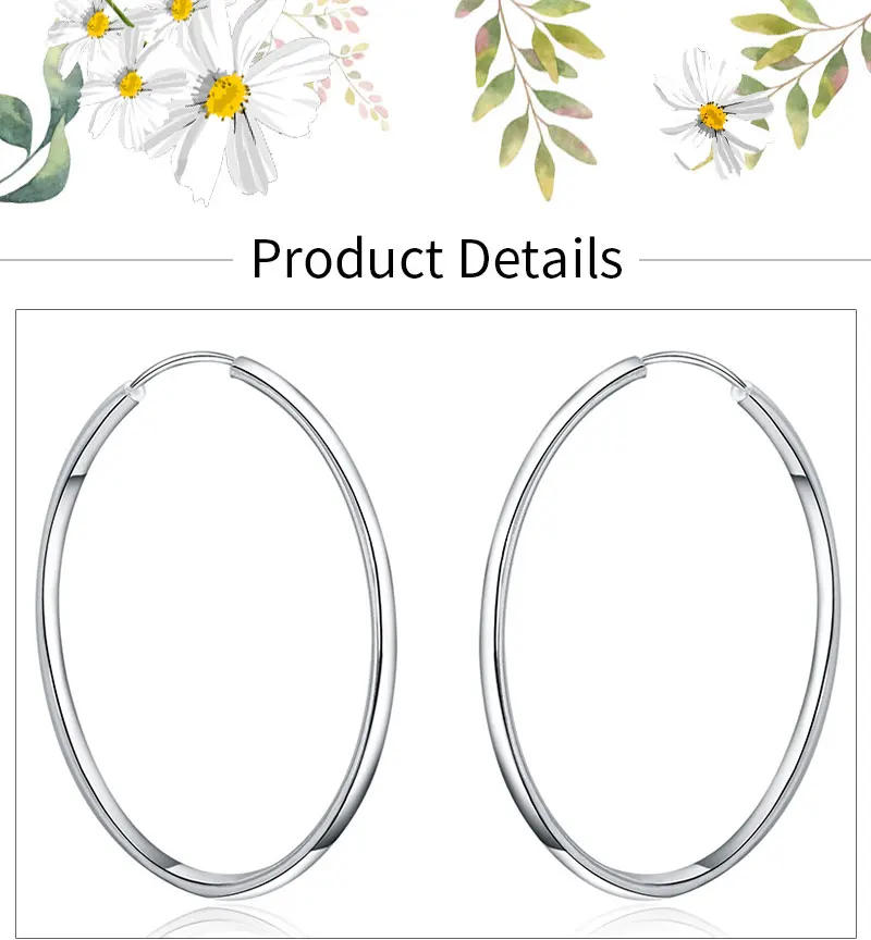 Créoles en argent sterling 925 – Grandes boucles 50/60 mm élégantes et intemporelles | Hope & Light Girlz