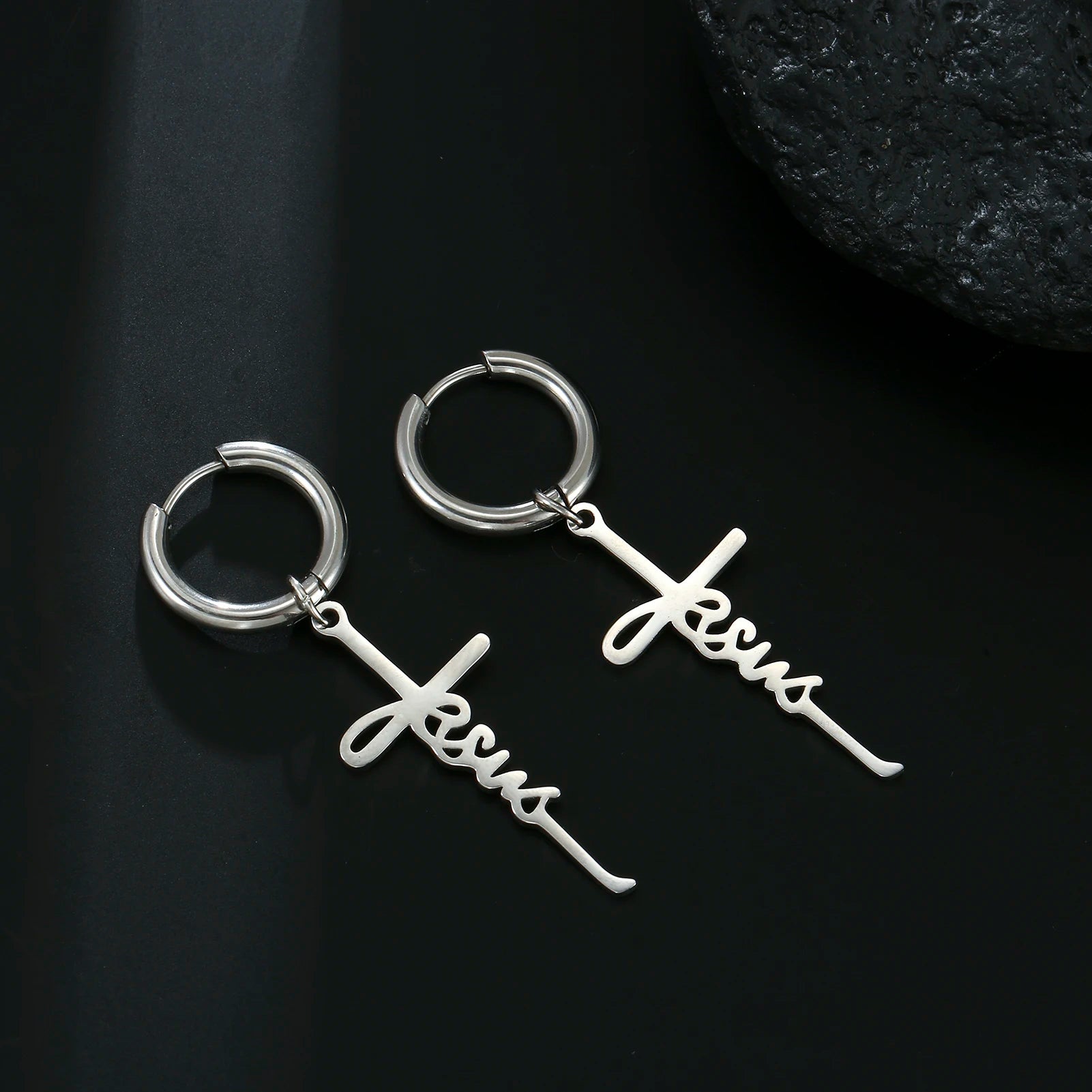 Ces boucles d’oreilles en forme de croix avec l’inscription "Jesus" ne sont pas de simples bijoux.