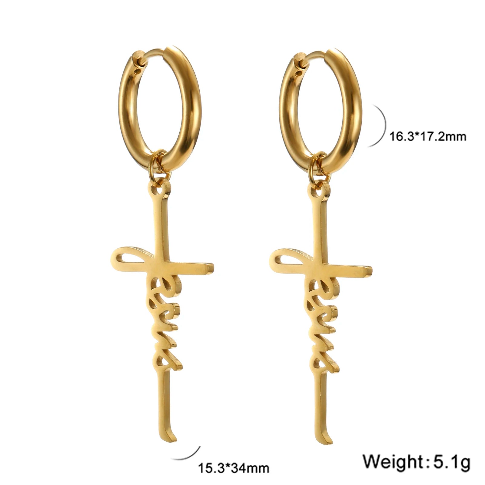Boucles d’Oreilles Croix "Jesus" – Acier Inoxydable Or ou Argent – Bijoux Foi Femme Élégants