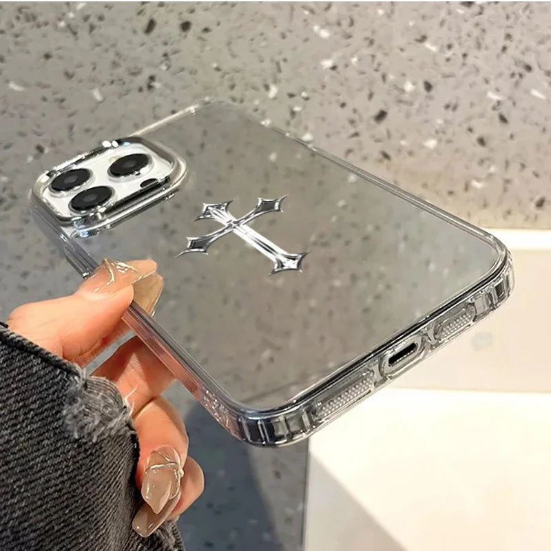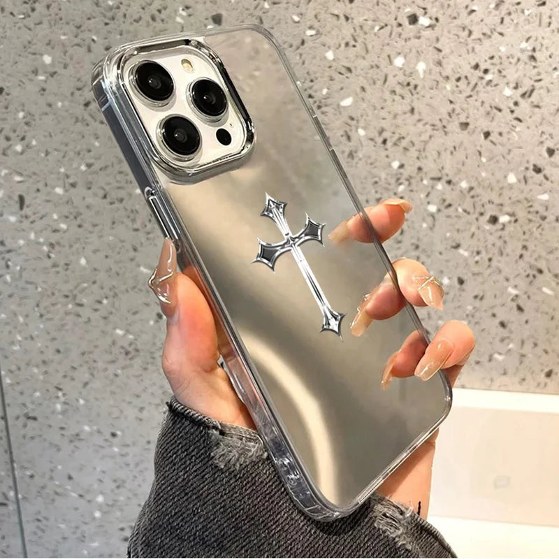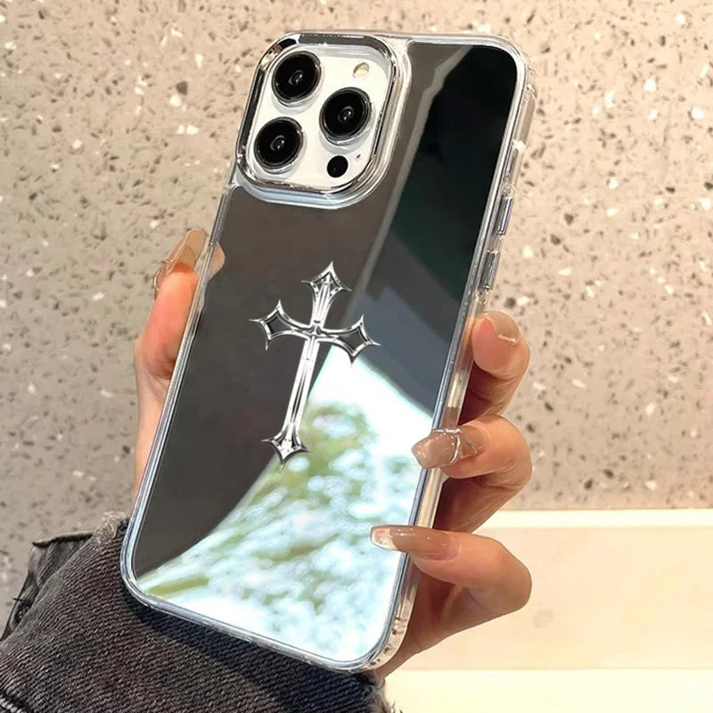 Coque iPhone Croix Chrétienne Miroir – Protection Élégante avec Croix Argentée | Hope And Light Girlz