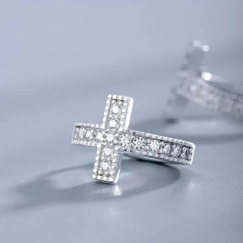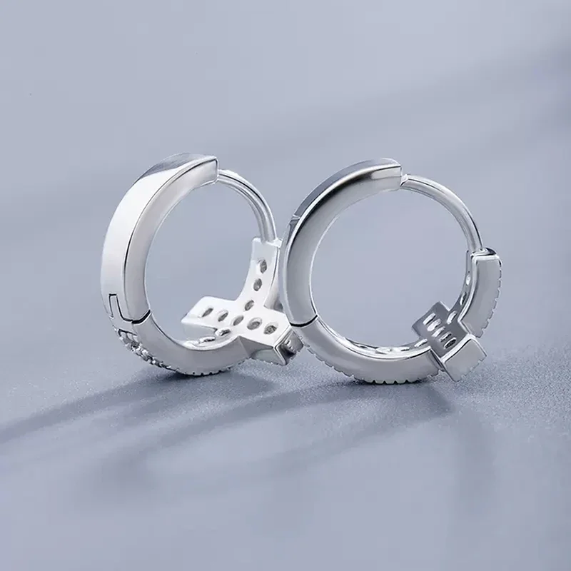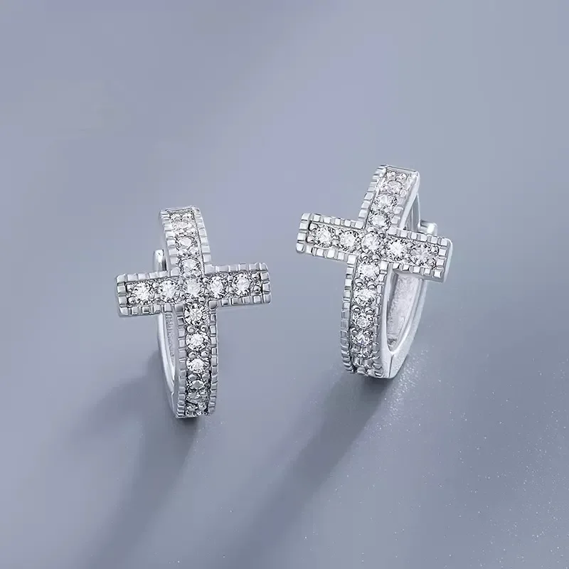 ✨ Boucles d’oreilles créoles Croix argentée – Mini format serti – Bijou chrétien femme élégant