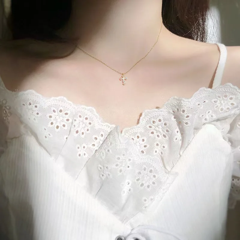 Collier Croix en Argent 925 et Plaqué Or 18K | Pendentif de Foi Élégant – Bijou Féminin Hope & Light Girlz