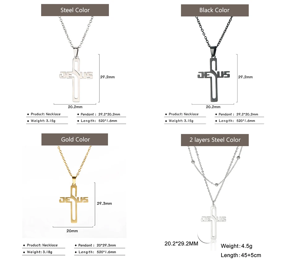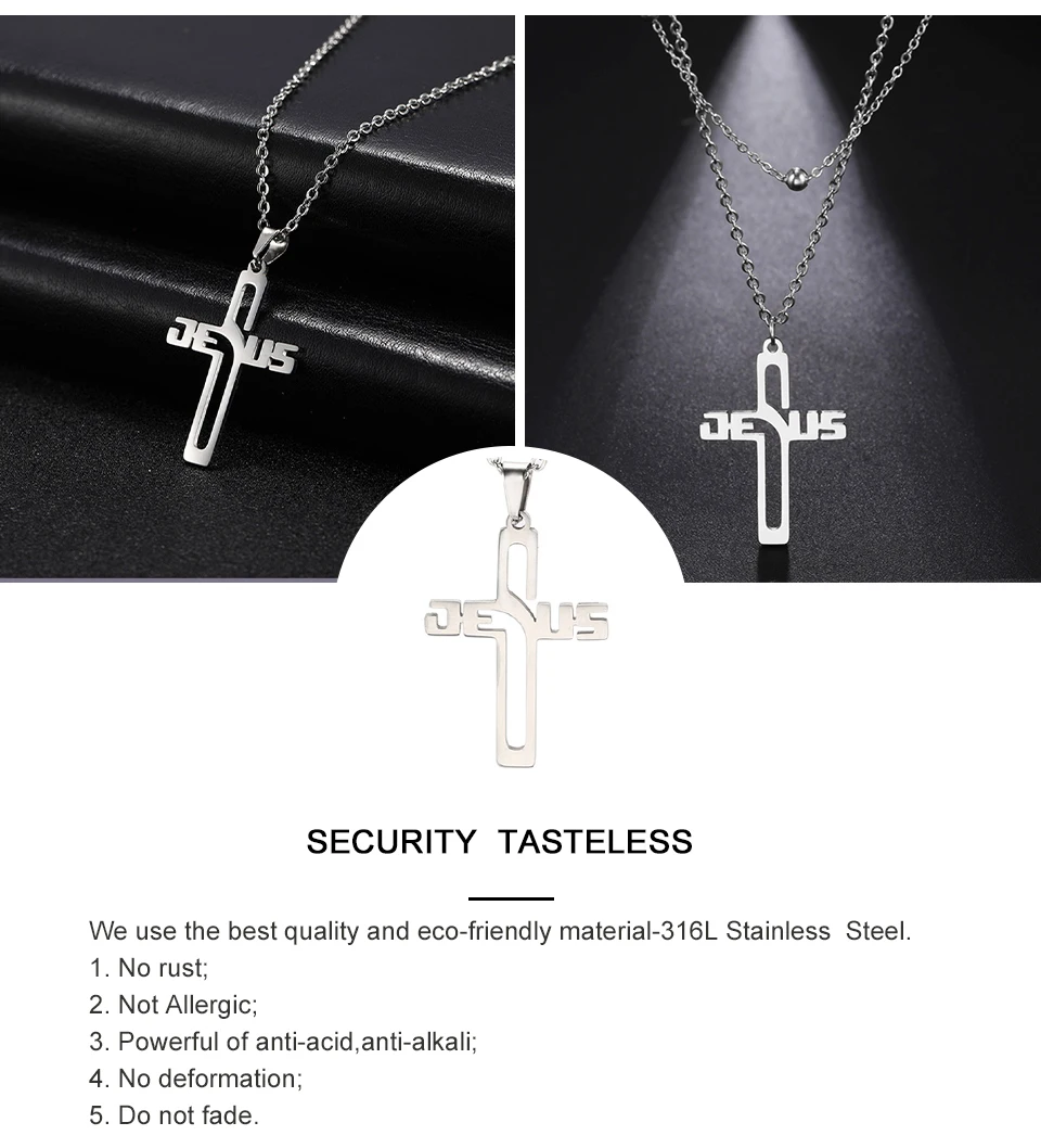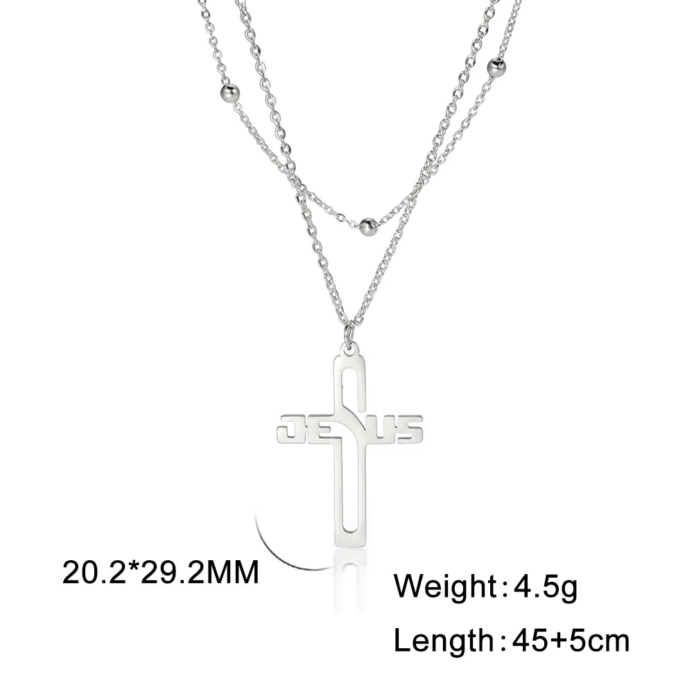 🤍 Collier Croix « Jesus » – Acier Inoxydable
