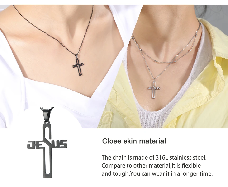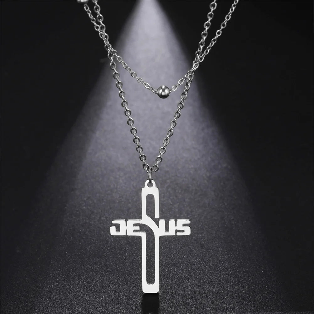 Collier représentant une croix stylisée intégrant le nom « JESUS », au design à la fois moderne et intemporel.