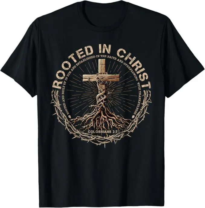 Le t-shirt “Rooted in Christ” s’adresse aux hommes qui veulent marcher enracinés, solides et alignés. Inspiré de Colossiens 2:7, son visuel puissant — la croix enracinée profondément dans la terre — symbolise une foi stable, inébranlable, vivante.