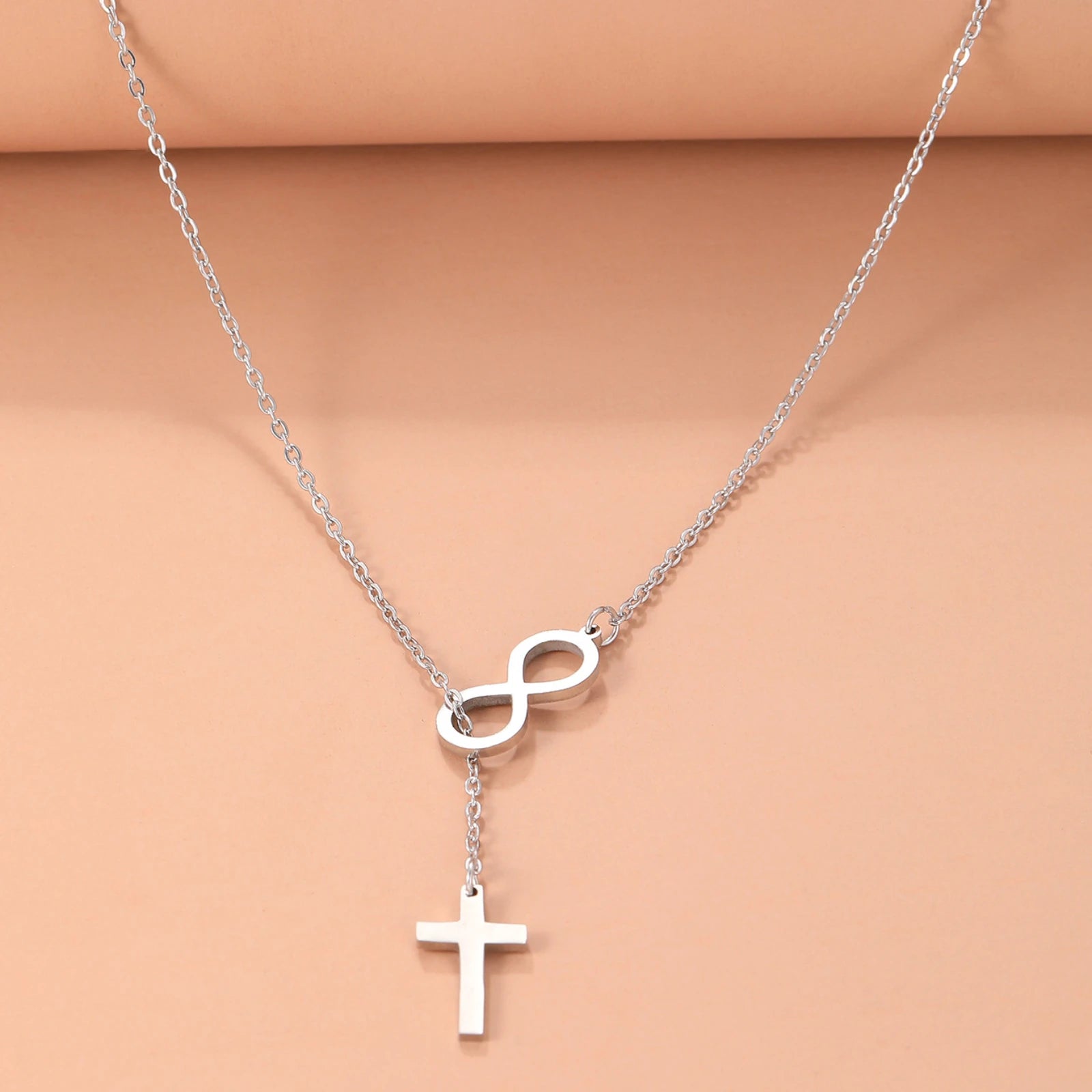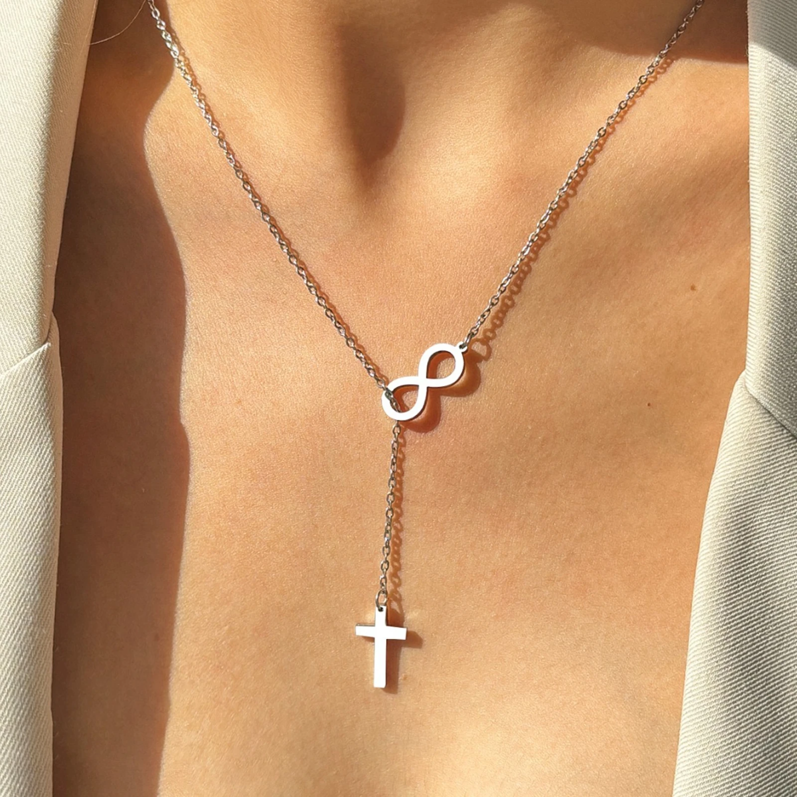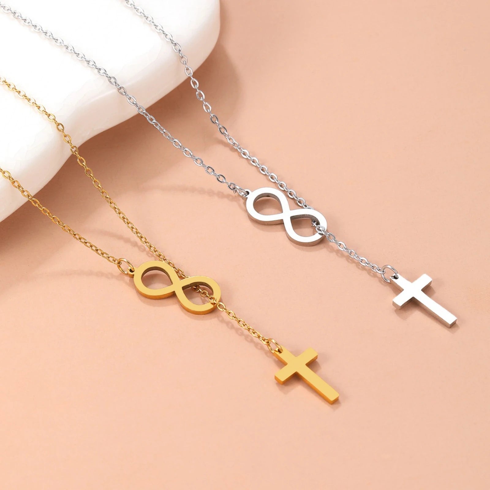 Collier Croix & Infini – Amour éternel de Dieu | Acier inoxydable doré ou argenté | Hope & Light Girlz